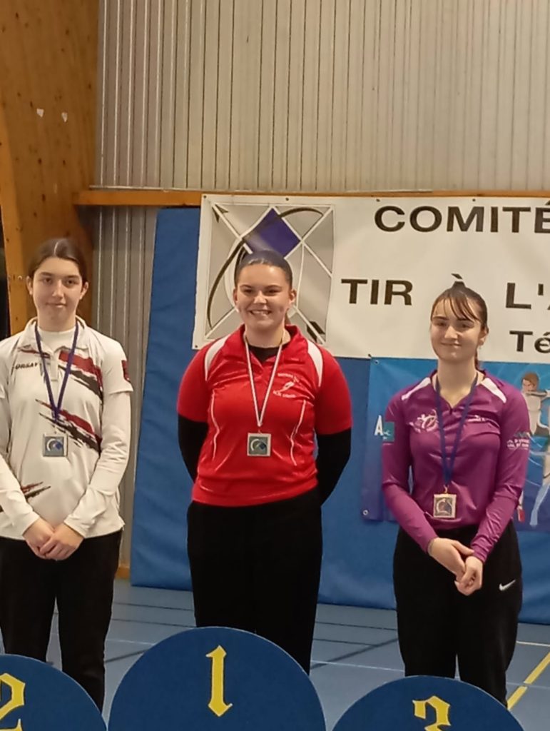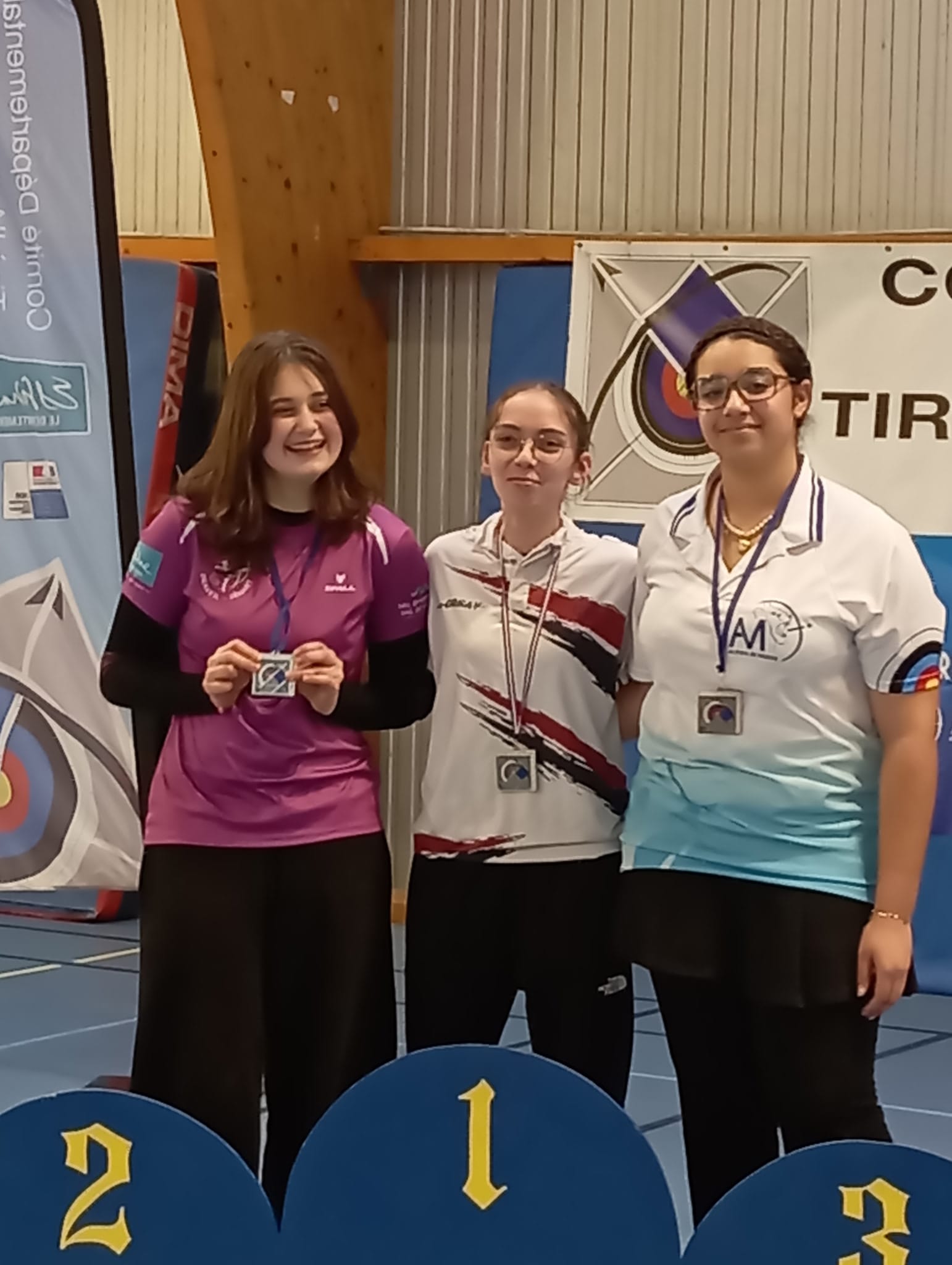 U18 – Eléonore BON, 3ème des qualifs (532) et bye au premier tour, remporte ensuite ses 2 matchs (6-2/6-4) pour une place en finale. Une finale perdue de justesse au barrage (5-6) face à une solide archère d’Orsay (561), pour terminer avec une médaille d’argent. Zoé LEJEUNE (507) se classe 5ème (6-0/4-6). Sarah THEROND (370) et Nina GINOUVEZ (344), toutes les deux éliminées en 1/8 sur le même score (0-6), terminent 12ème et 13ème.
