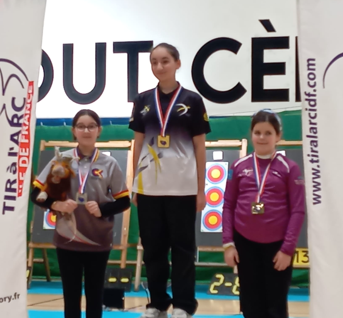 U13 – Juliette GAYOT, avec 381 pts (176-205) termine 5ème des qualifs. Après un 1/4 remporté au barrage, elle s’incline 4-6 en 1/2 finale avant de s’imposer 6-0 dans la petite finale pour une médaille de bronze.