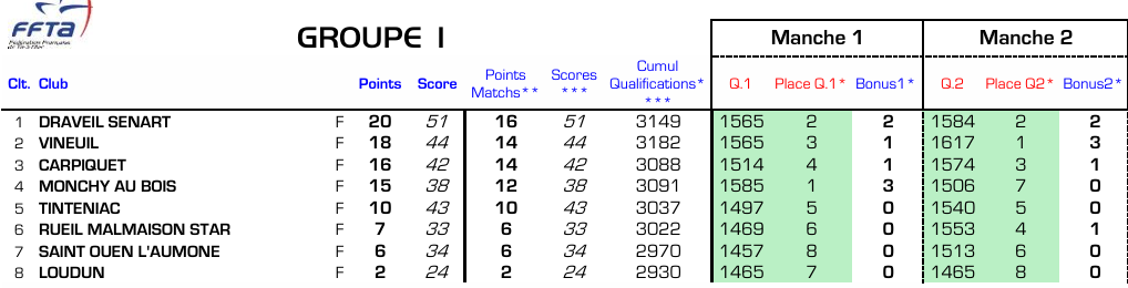 Avec à nouveau 10 pts glanés sur cette étape, l’équipe prend la tête du Groupe 1 et a déjà assuré sa participation à la finale des D2, le 6 juillet à Brienon-sur-Armançon. Une qualification qui sera validée le 22 juin prochain lors de l’ultime étape, à St Ouen-l’Aumône, avec un programme difficile puisqu’il faudra affronter les 4 autres meilleures équipes du groupe. Lors de la phase aller contre ces adversaires, le bilan s’était soldé par 2 victoires (Vineuil et Tinteniac) pour 2 défaites (Carpiquet et Monchy-au-Bois).