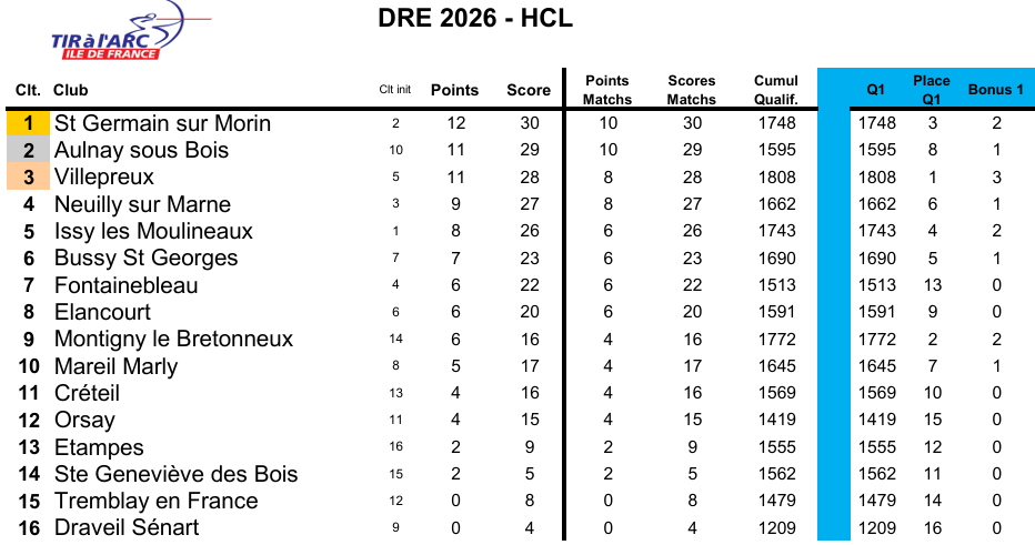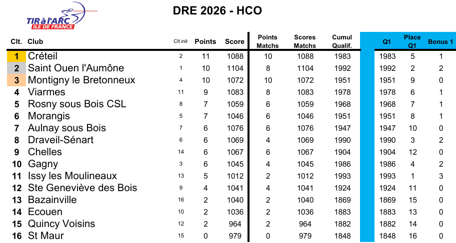 Dans ces conditions, l’équipe termine 16ème des qualifications. Pas de miracle ensuite ; nos archers sont logiquement dominés par Aulnay (0-6), Elancourt (0-6) et Bussy-St-Georges. (0-6). Ils réussissent toutefois à arracher un set face à Marly (2-6) et Orsay (2-6). Bons derniers du classement intermédiaire, ils ont néanmoins permis de conserver un espoir de maintien en évitant le forfait et peuvent en être remerciés. Il faudra maintenant une forte mobilisation des archers confirmés lors des deux prochaines étapes pour éviter l’une des trois dernières places du classement final, synonymes de relégation en DRH.