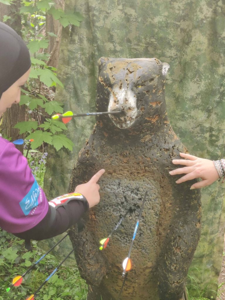 Après la présentation des trois disciplines de parcours, un petit échauffement et deux volées d’entraînement au tir bare bow, tous les archers ont pu faire un petit tour de terrain par peloton de 4, sur une douzaine de cibles Nature, 3D et Campagne. Ils étaient encadrés par Alain, Karine et Marine JONO, Matthieu ROSSIGNOL, Eric LEFEBVRE, Jeanne BERTOUX et René LE GOFF, venus épauler Jeff.