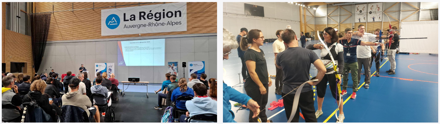 Ont été conviés à ce séminaire sur l’entraînement, une petite centaine de personnes : l’ensemble des acteurs du tir à l’arc concernés par l’apprentissage, la pratique et l’entraînement des jeunes, membres des équipes techniques régionales, entraîneurs de club ETAF, entraîneurs de pôles Espoirs et cadres techniques. Maxence GUTHERTZ était présent à titre d’entraîneur de club ETAF. Hugo TONNAIRE assistait également au séminaire dans le cadre de son cursus de DEJEPS.