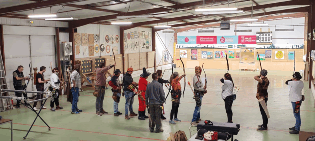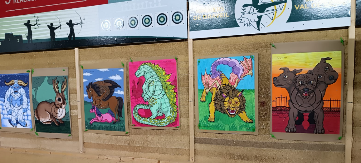 Comme tous les ans à cette période, la séance d’entraînement du jeudi soir des archers de parcours a pris des airs d’Halloween. Quelques déguisements de circonstance, des cibles spéciales créées par Alexandra FRANCOIS et bien sûr des bonbons… Mais même en cette soirée particulière, la quinzaine d’archers présents n’ont pas échappé à la traditionnelle séance de renforcement musculaire et de gainage menée par Nadeige COSTES.